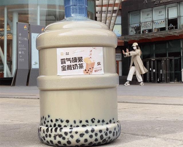 今年3月,不少商家推出了类似于桶装水的“桶装奶茶”,这样的桶装奶茶体型比杯装的大了很多,容量通常在5升左右。