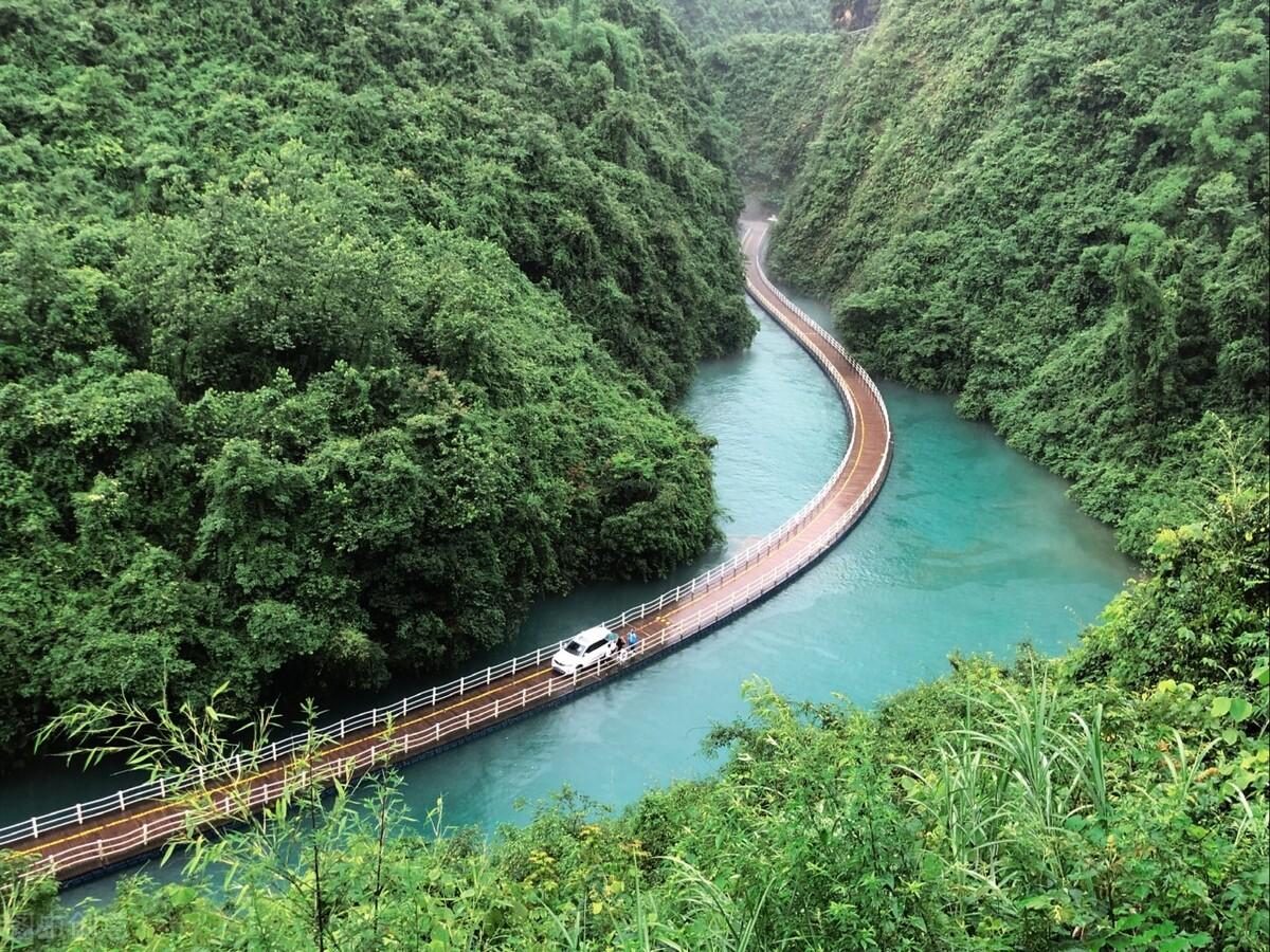 恩施地心谷,位于建始县,这里幽深峡谷,绝壁古洞,谷底一条清澈的小溪急流奔涌,如翡翠般的深潭,其景色犹如回到远古的侏更罗纪时代,是一个隐藏在悬崖峭壁中的世外桃源。